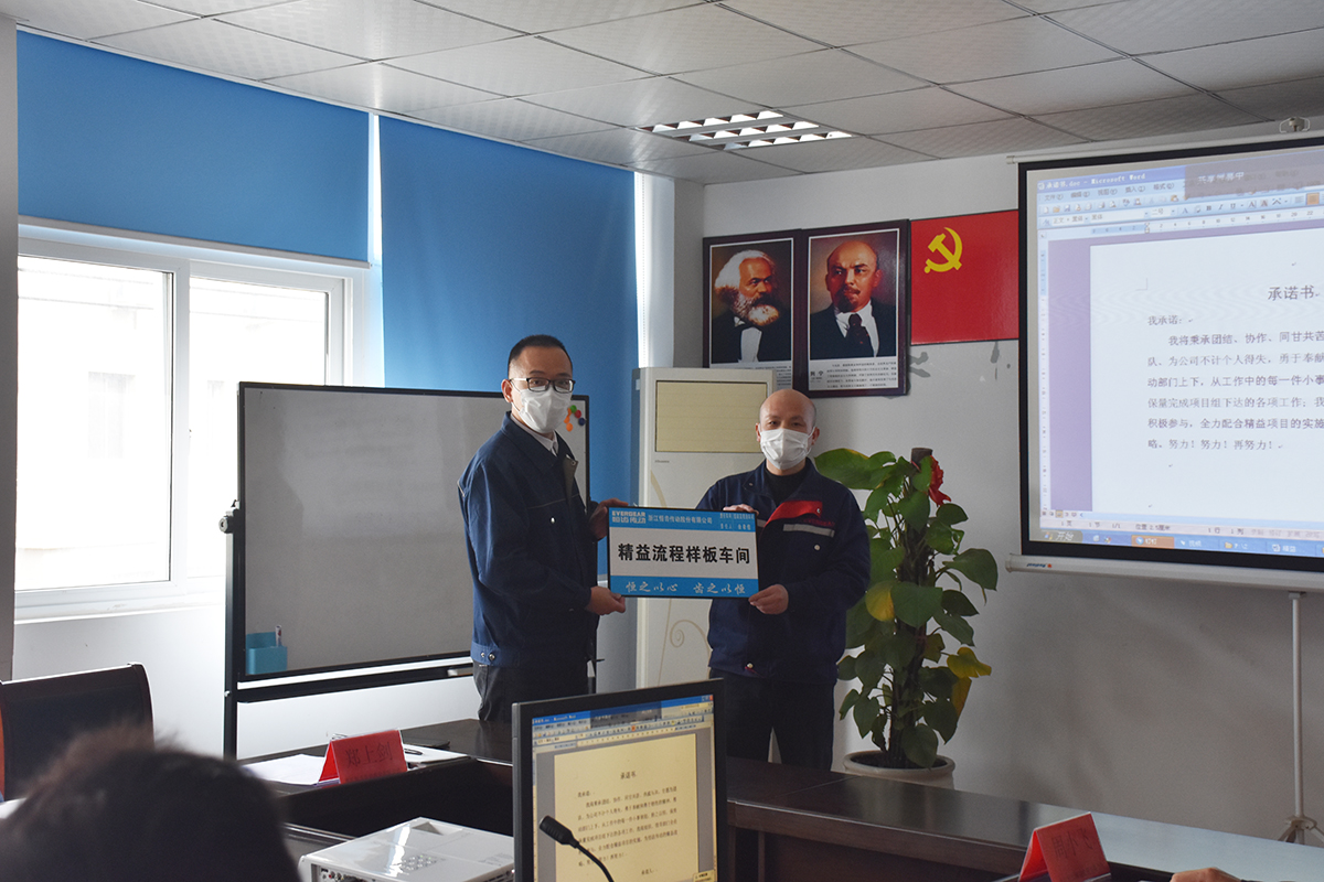 會上由鄭總帶領參會人員進行宣誓:推動部門上下,從工作中的每一件小事做起;持之以恒,保質保量完成項目組下達的各項工作;組織、領導部門全員積極參與,全力配合精益項目的實施,為恒齒傳動的精益戰略努力。
