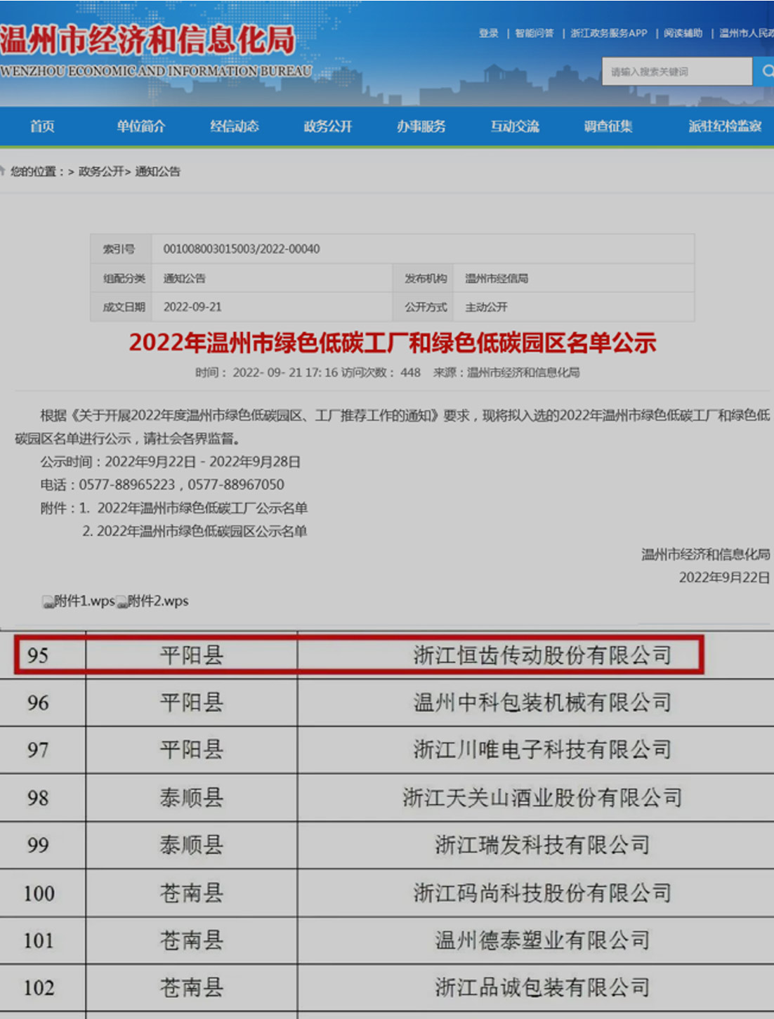 2022年12月19日,溫州市經濟和信息化局發布了關于2022年度創新型中小企業的名單公示,浙江恒齒傳動股份有限公司名列其中。